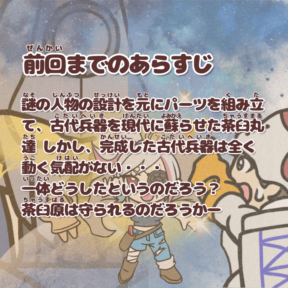 前回、古代兵器を甦らせた茶臼丸たち。しかし、完成したはずの古代兵器はまったく動く気配がない。