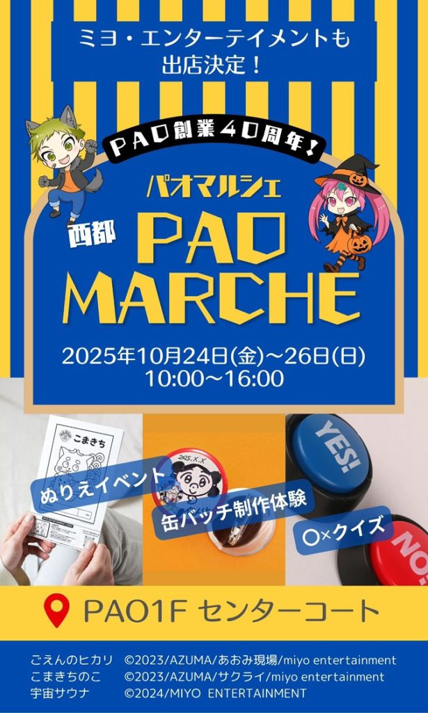 2025年10月24日(金)~26日(日)までの3日間、西都PAO創業40周年記念の、PAOマルシェが開催されます!
